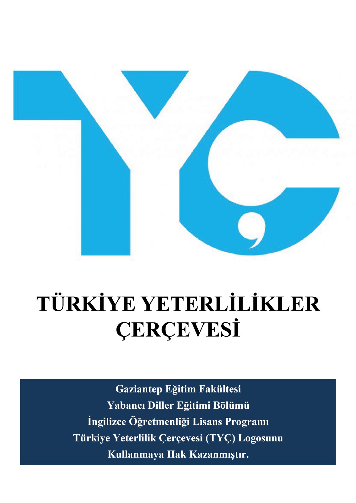 • Gaziantep Eğitim Fakültesi Yabancı Diller Eğitimi Bölümü İngilizce Öğretmenliği Lisans Programı Türkiye Yeterlilik Çerçevesi (TYÇ) Logosunu Kullanmaya Hak Kazanmıştır.